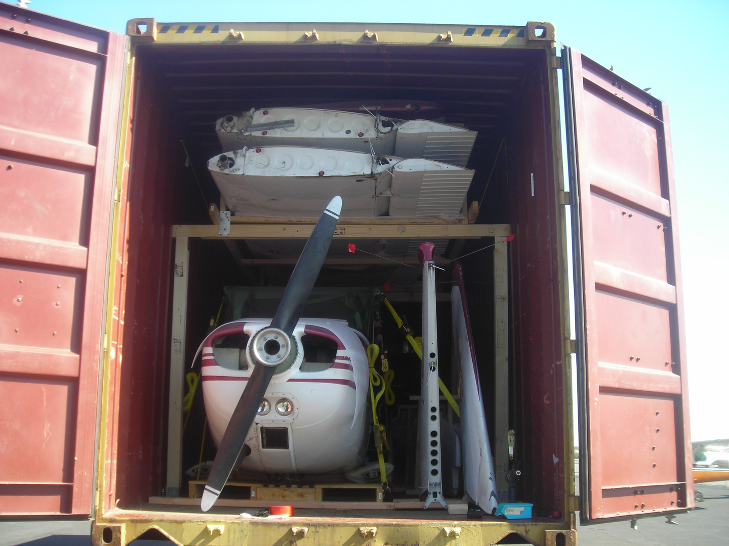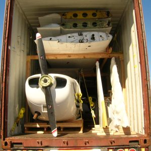 Once payment is recieved, a container will be ordered. Upon arrival of the container, our crew will begin carefully loading the disassembled aircraft into an ocean rated shipping container, This is a process that we here at Skyview specialize in. We take the greatest care of your precious cargo, making sure all parts and pieces are safe and secure!